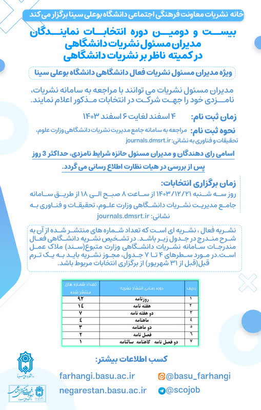 خانه نشریات دانشگاهی معاونت فرهنگی و اجتماعی دانشگاه بوعلی سینا برگزار مینماید: